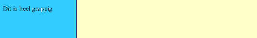 Het zal duidelijk zijn dat de afbeelding meerdere keren naast elkaar wordt weergegeven.Als je een lang en smal plaatje gebruikt krijg je zoiets als dit...<BODY BACKGROUND="pics/bluebar.gif">
